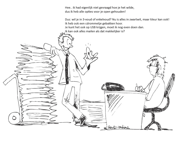 Veel van onderstaande cartoons werden gebruikt om ingewikkelde en abstracte begrippen duidelijk te maken aan personeel, klanten en/of relaties. Bijvoorbeeld om mensen aan te sporen tot bepaald gedrag. Ook zitten er logo’s tussen en nog veel meer. Benieuwd naar de opdrachtgevers?